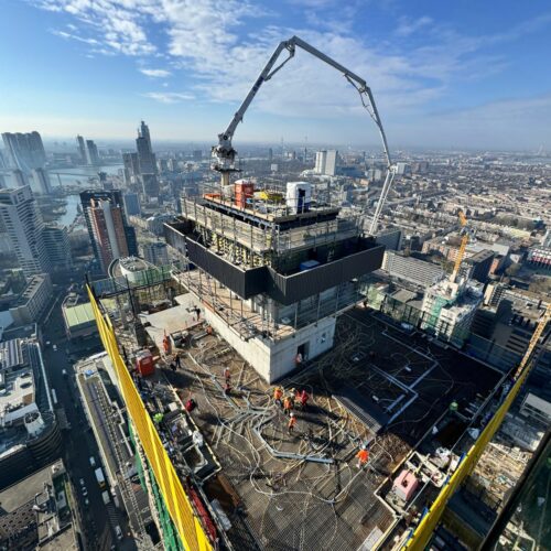 On the 19th of March 2025, the last section of the climbing core wall was poured, reaching its final height of +152.90 m.