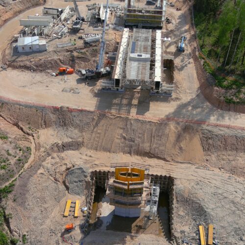 Construction of a 1,5 km-long railway bridge over the Neris river, near the city of Jonava.