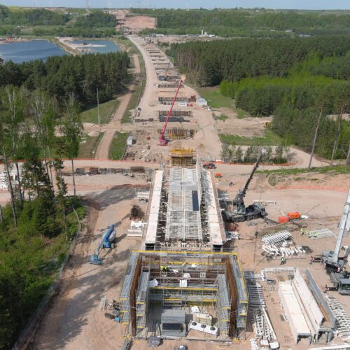 The bridge – the longest bridge ever built not only in Lithuania but in the Baltics – will be erectedf using different types of multiple spans, including cast-in-place from traveler, cast-in-place supported on false work and span by span cantilever.
