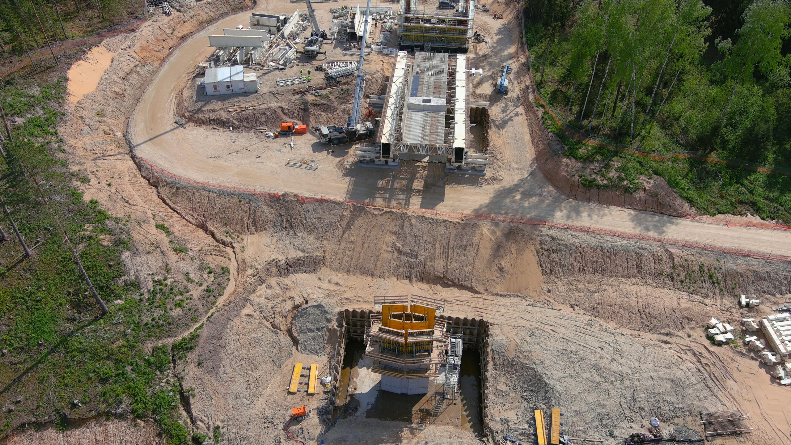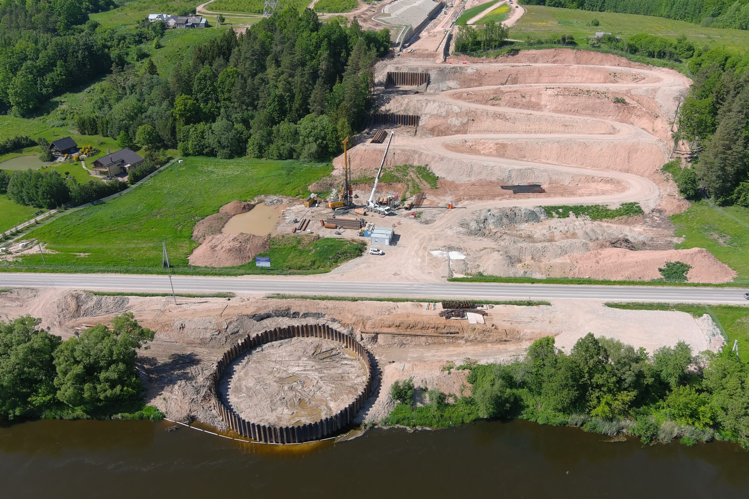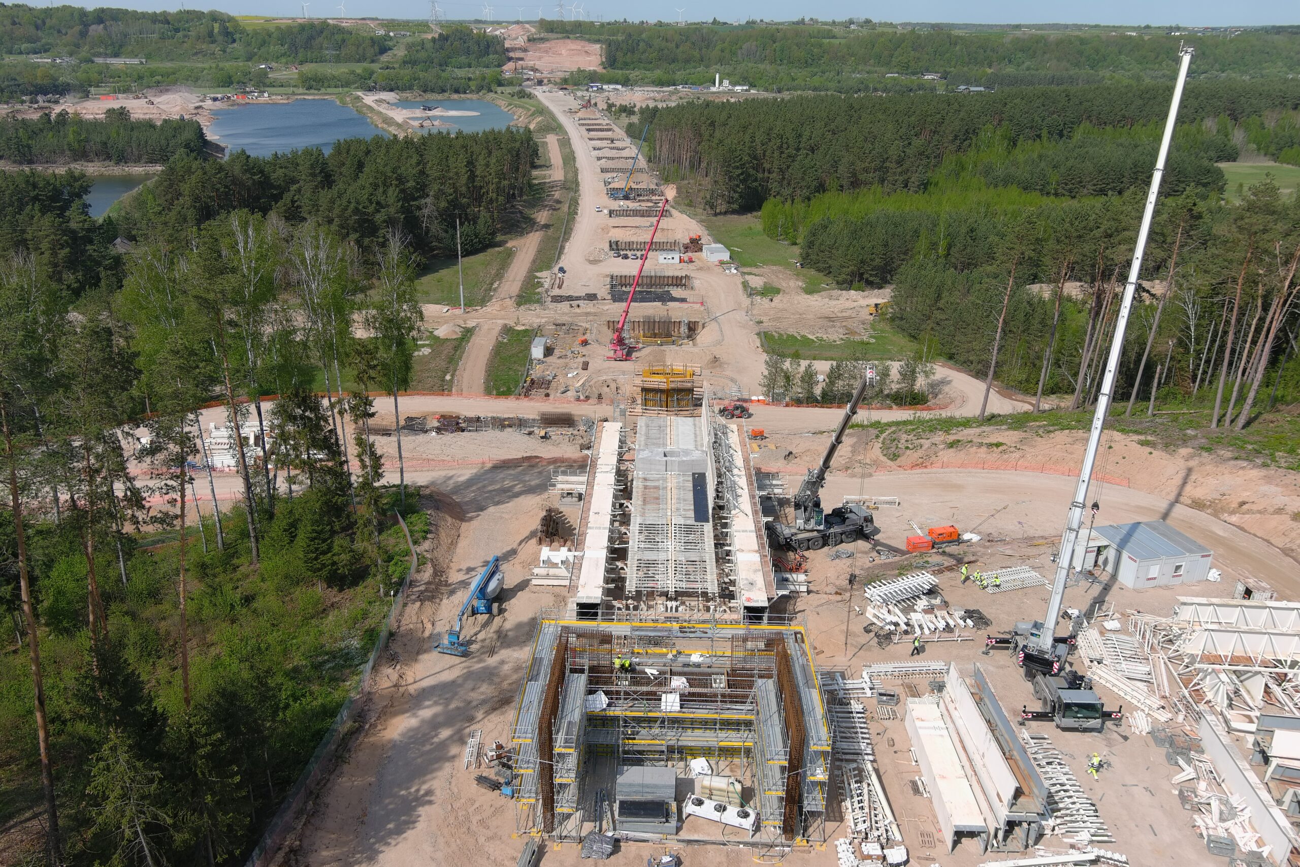 Construction of a 1,5 km-long railway bridge over the Neris river, near the city of Jonava.