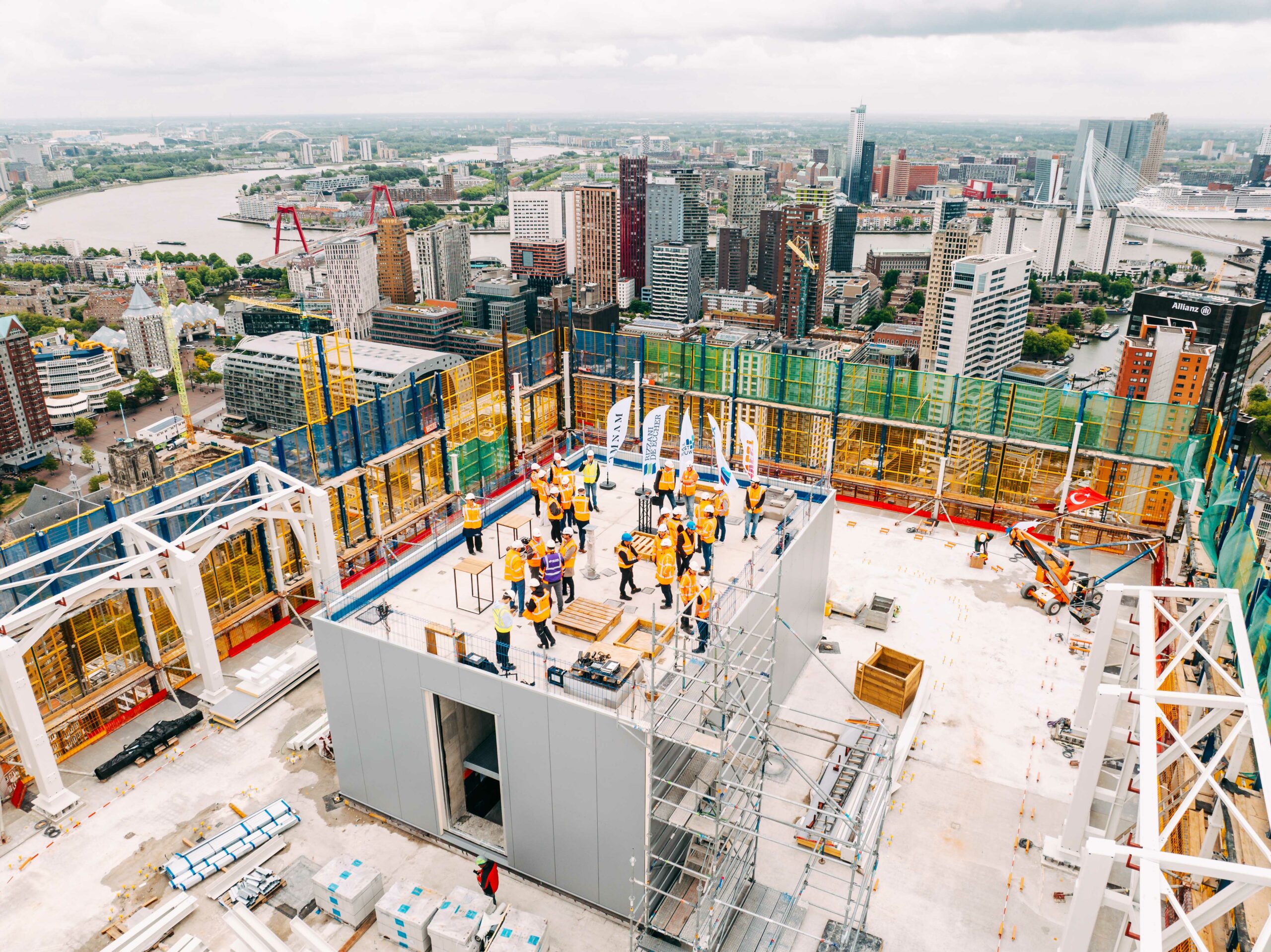 We are proud to announce that the highest point of the Post Tower in Rotterdam has been reached! Now standing at 155 meters, the tower is an impressive new addition to the city’s skyline and marks a major milestone in a project where heritage and innovation come together.
